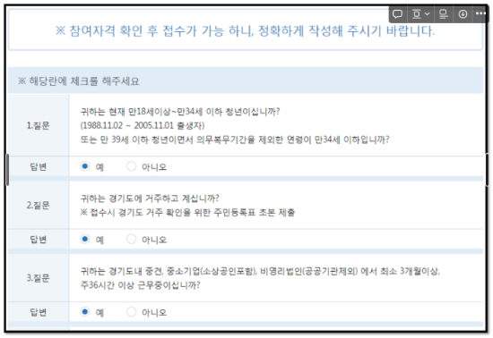- 근무 조건: 경기도 내 소규모 또는 중소기업, 소상공인, 비영리 법인에서 주 36시간 이상 3개월 이상 근무한 자 (4대 사회보험 미가입자도 신청 가능)