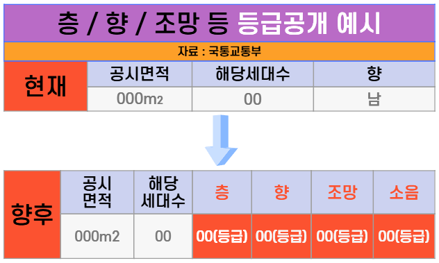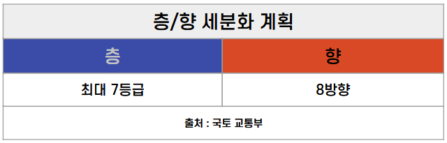이에 국토부는 세부 등급 체계를 공개하기로 결정했습니다. 층수는 최대 7개 등급으로 분류하고 방향은 여덟 가지로 세분화하여 내년 상반기까지 등급을 공개할 계획입니다.
